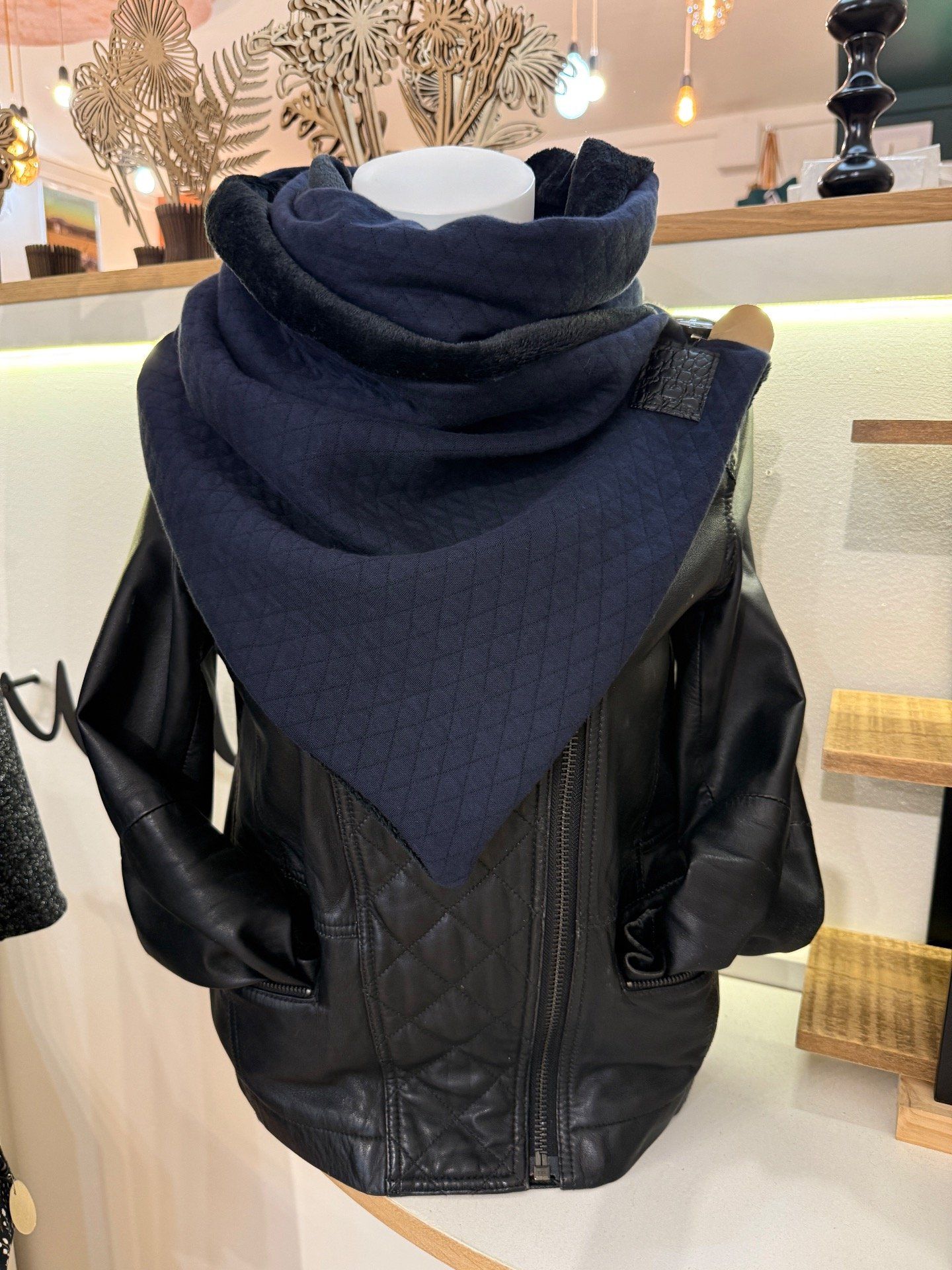 Emmitoufle toi dans cette écharpe chèche qui couvre bien le cou et surtout qui protège bien devant tout en arborant un look alternatif et décalé comme on les aime tant !
