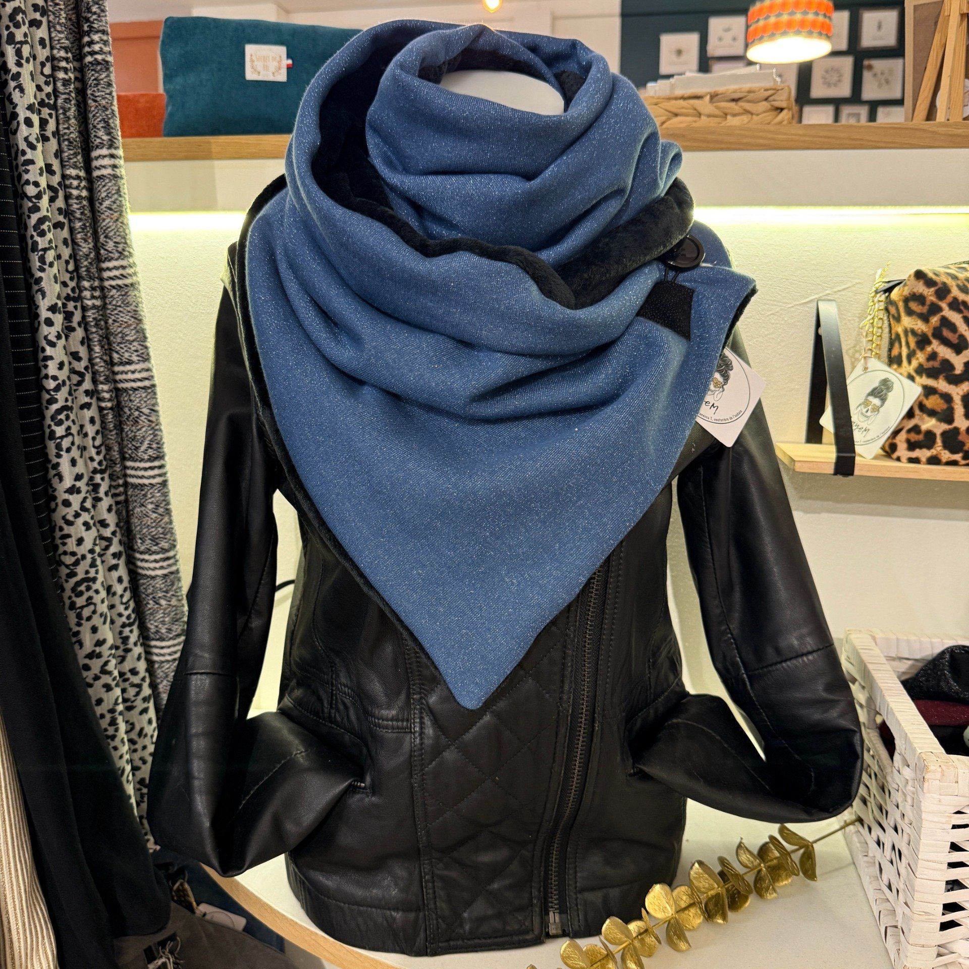 Echarpe chèche bleu pailleté