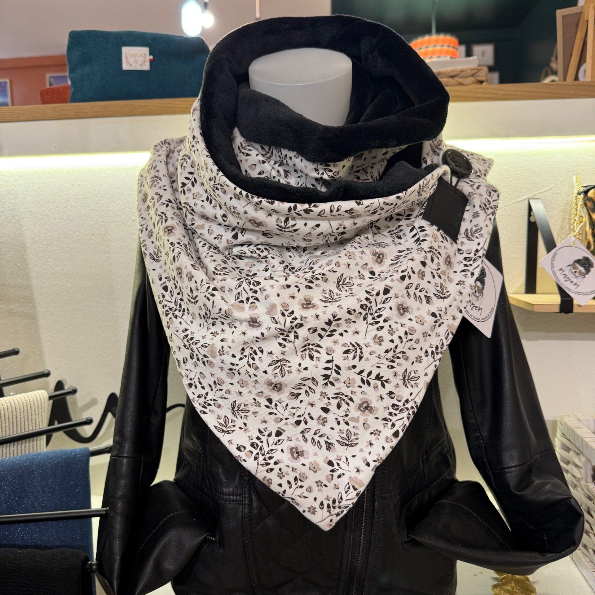 L'hiver j'aime m'emmitoufler dans une grosse écharpe qui me couvre bien le cou et surtout qui protège bien devant. J'ai voulu imaginer un accessoire qui te permet d'avoir super chaud et d'arborer un look alternatif et décalé.