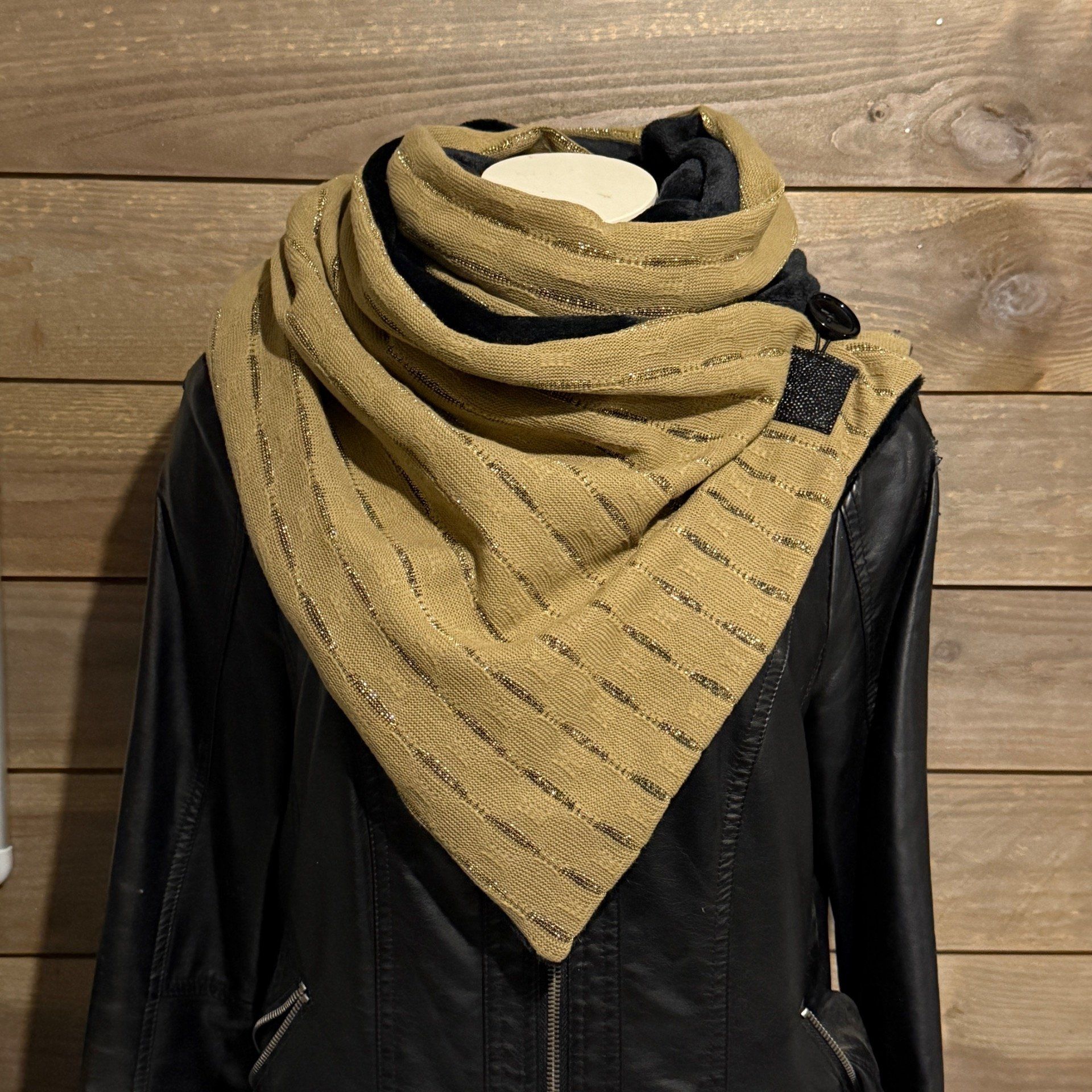 L'hiver j'aime m'emmitoufler dans une grosse écharpe qui me couvre bien le cou et surtout qui protège bien devant. J'ai voulu imaginer un accessoire qui te permet d'avoir super chaud et d'arborer un look alternatif et décalé.