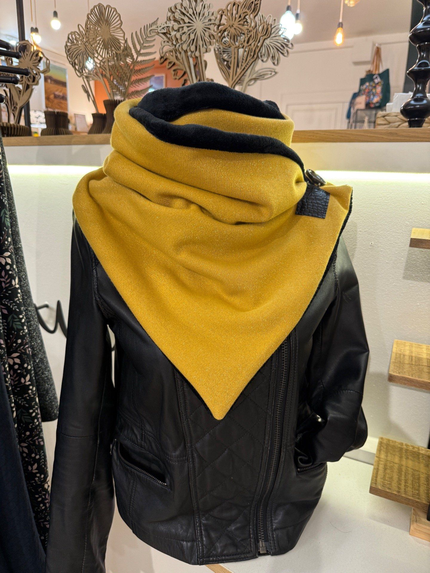 Emmitoufle toi dans cette écharpe chèche qui couvre bien le cou et surtout qui protège bien devant tout en arborant un look alternatif et décalé comme on les aime tant !