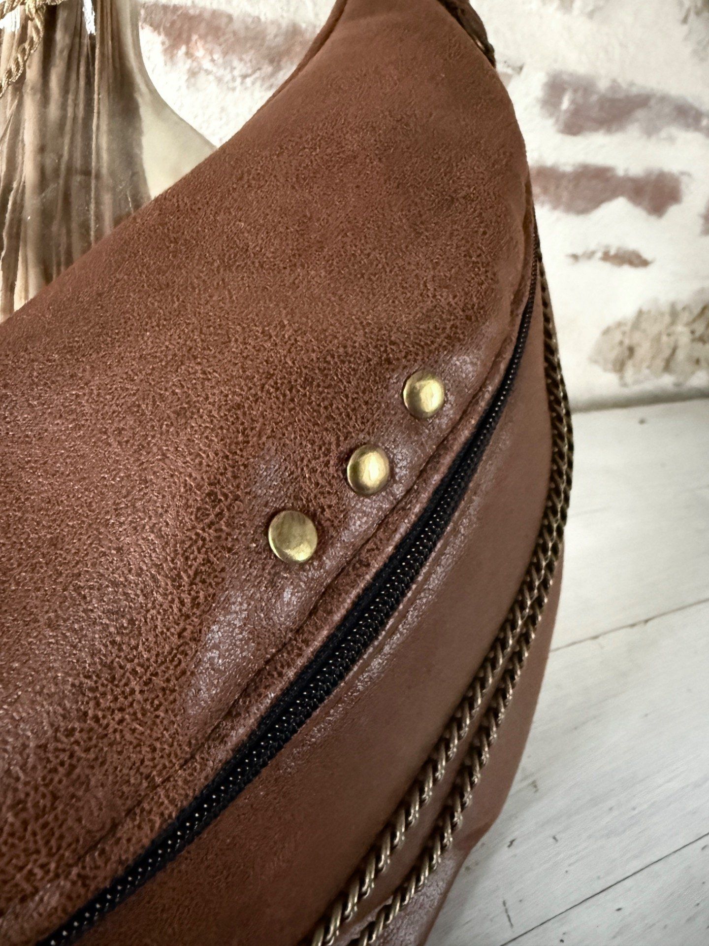 Banane ornée de chaines pour la touche rock. Accessoire à la fois classique mais plein de caractère pour une pièce authentique et pour que chacune ose affirmer son audace..