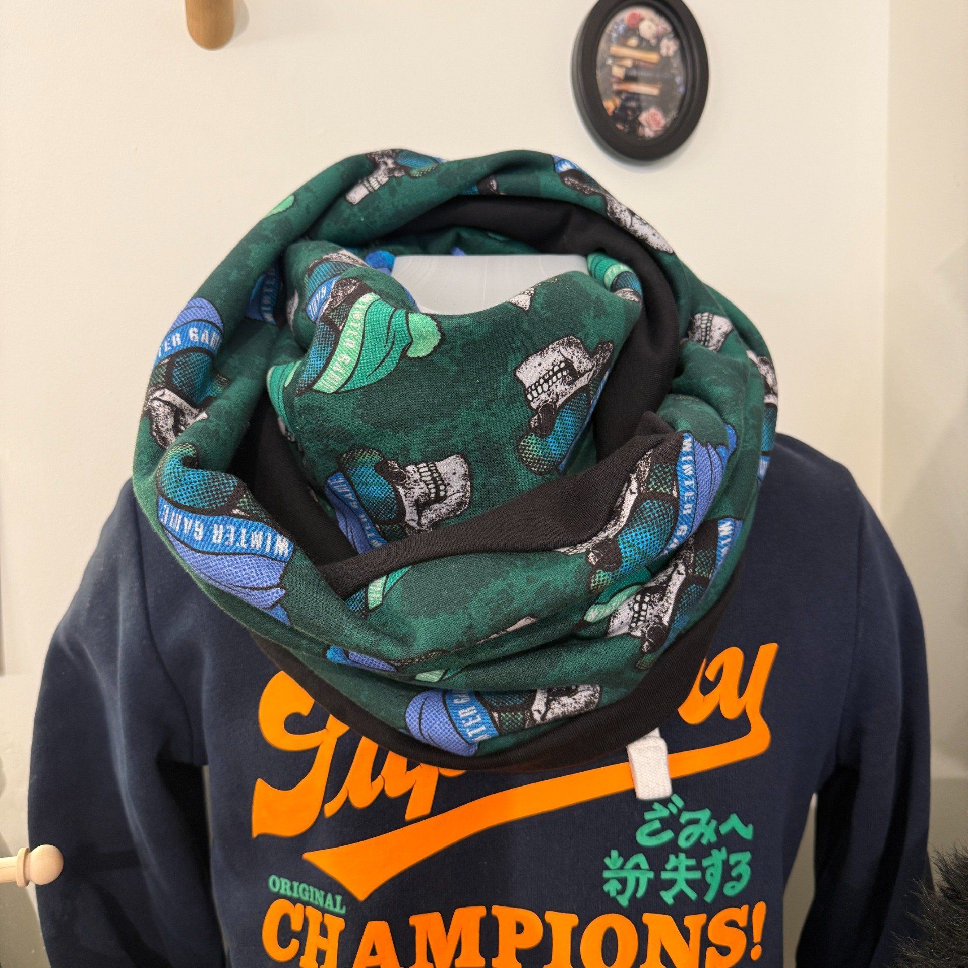 L'hiver j'aime m'emmitoufler dans une grosse écharpe qui me couvre bien le cou et qui me protège les oreilles. J'ai voulu imaginer un accessoire qui te permet d'avoir super chaud et d'arborer un look alternatif et décalé.